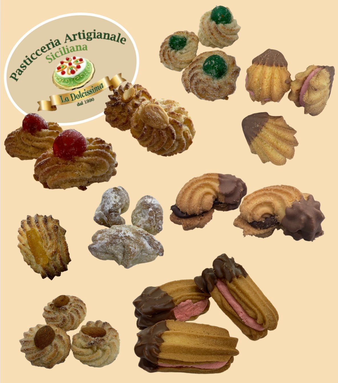 La confezione contiene 1 kg  Dolcini a Mandorla e 1kg di dolcini svizzeri